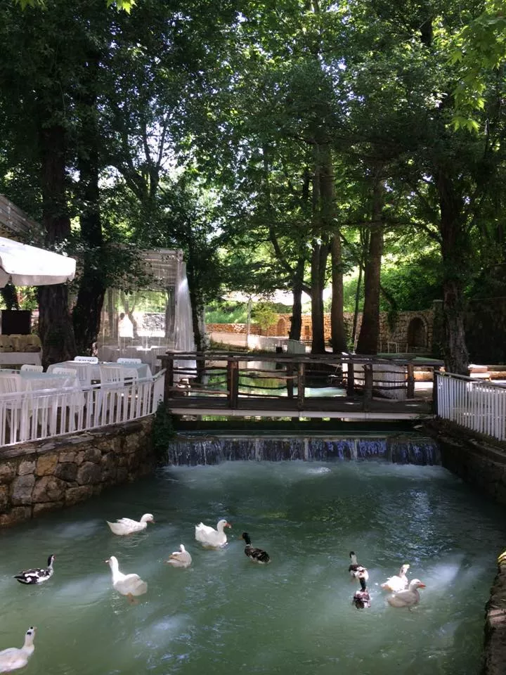 It is located on the banks of El-Barouk River with its cool water falls, in the middle of historic arches