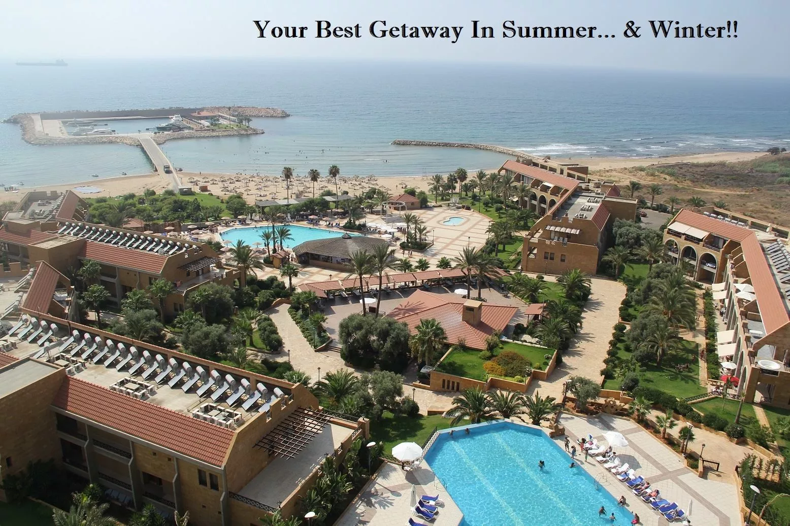 Jiyeh Marina Resort is the best getaway from the busy lifestyle of the city. It is one of the biggest beach resorts in Lebanon, with 169,000 sqm of facilities. It has everything one could wish for