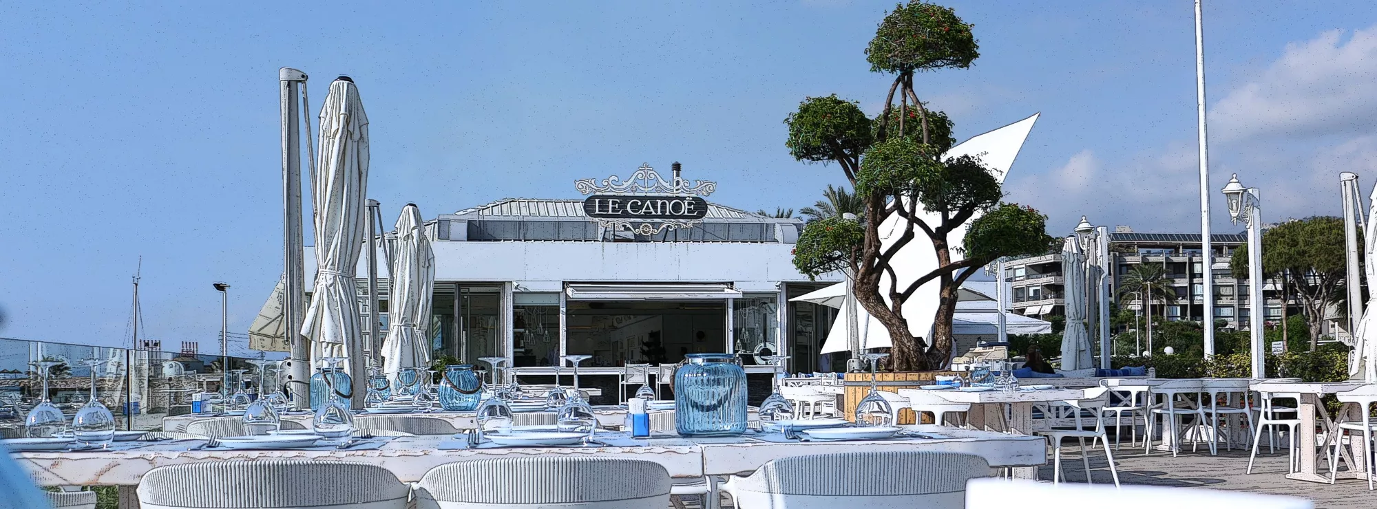 Le Canoë is a terrace restaurant located at the Holiday Beach Marina redefining the sea view experience since 1996
