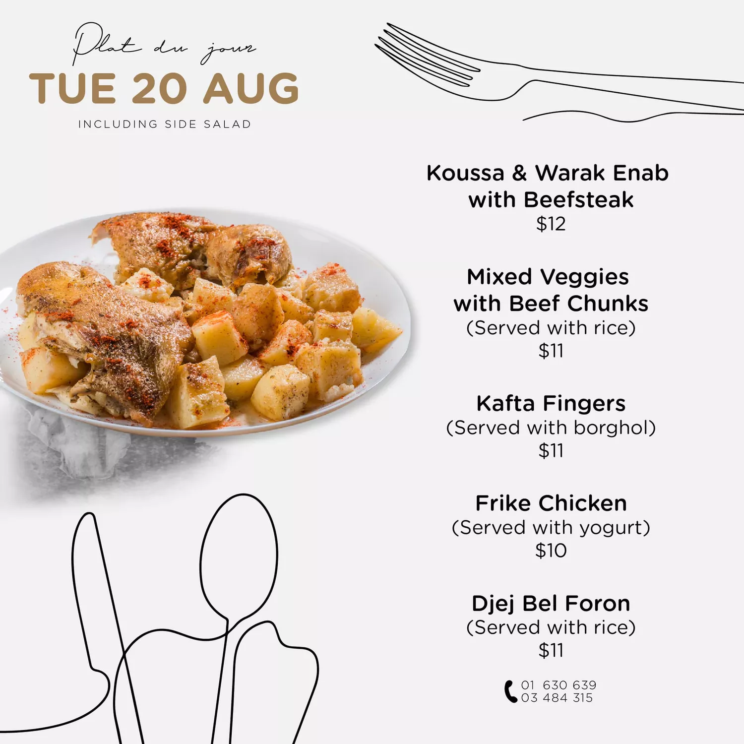 Shoppy catering offers you the best home made meals. For your orders, contact us at 01/630639. Hotline for urgent orders 03/484 315